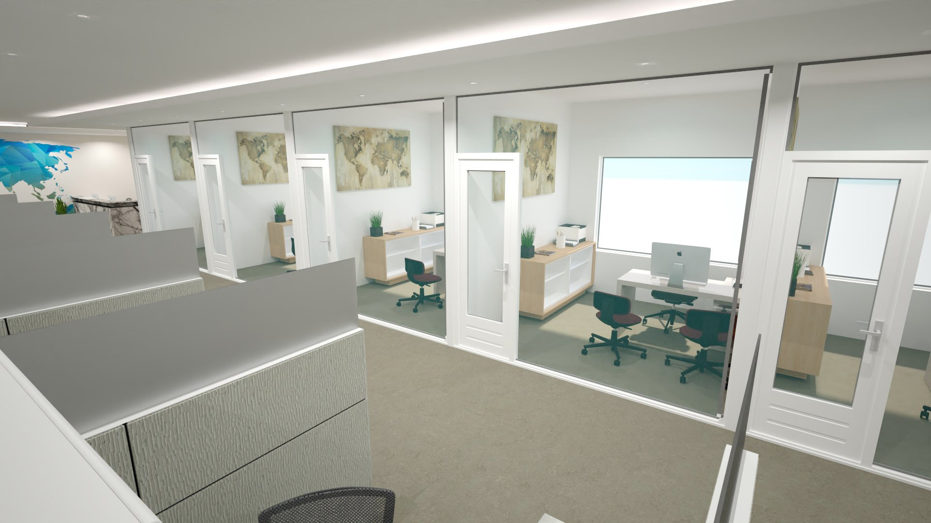 Diseño de interior para una empresa de envío internacional, se diseñó toda el área de oficinas administrativa, gerenciales y cubículos de trabajo para operadores.