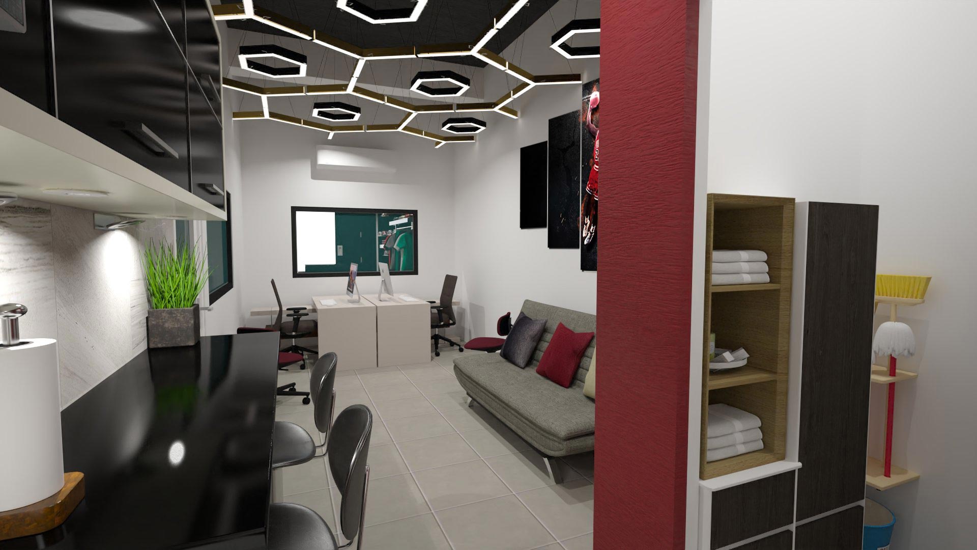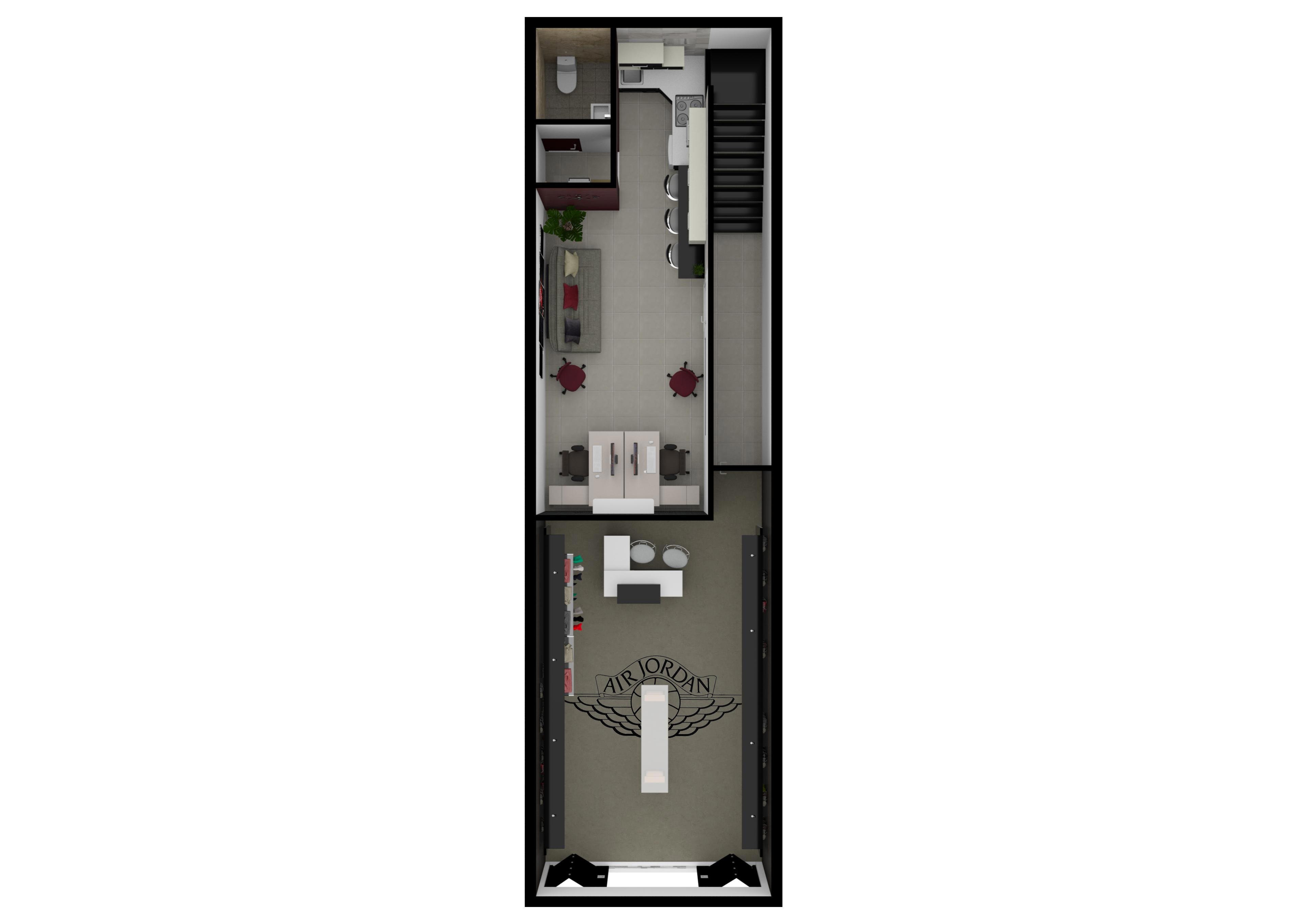 El Diseño de la tienda Chicago Sport está basado en la tendencia de estilo contemporáneo para complacer las preferencias del cliente. El uso de bloques de colores llamativos, techos altos, ventanas desnudas y lámparas de formas geométricas. Las piezas de los muebles hacen una declaración audaz, pero al mismo tiempo son simples y ordenadas, sin curvas ni decoración. Las formas lisas, limpias y geométricas son esenciales.